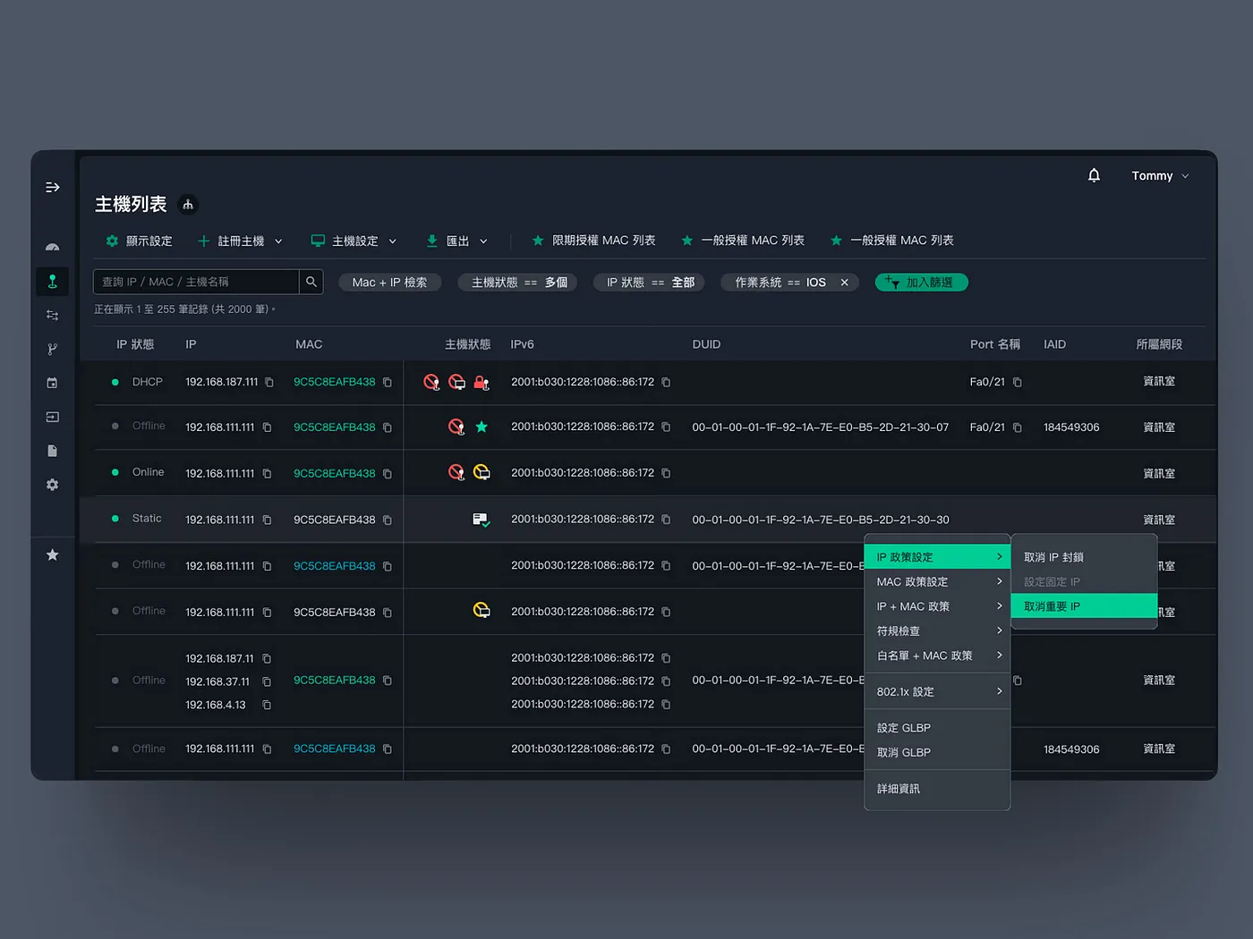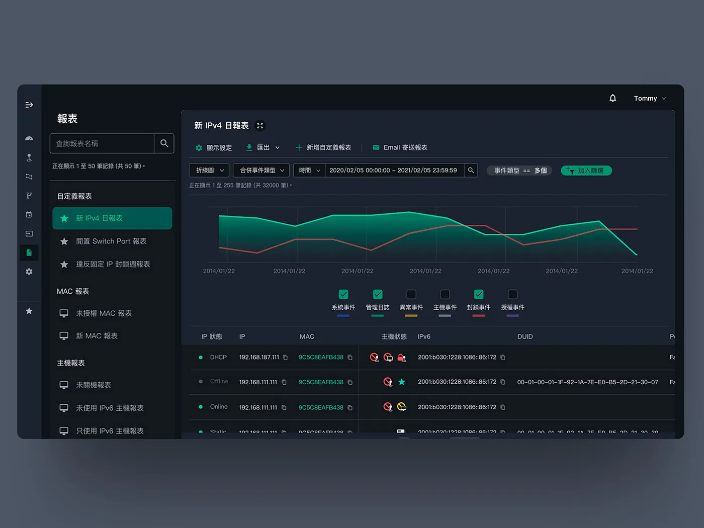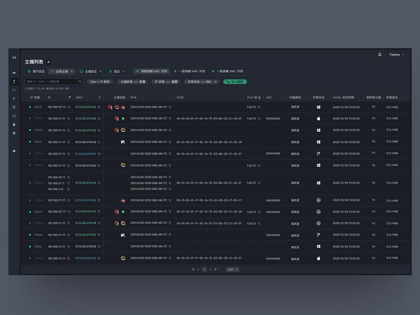 PIXIS is an enterprise network management system built for IT and network administrators overseeing complex, multi-site infrastructure. The platform provided a centralized interface for device discovery and inventory, network topology visualization, DHCP configuration, IP conflict detection, audit logging, and compliance rule enforcement across multiple organizational sites. Administrators could monitor switches, track host devices, and investigate security events from a customizable dashboard with draggable panels. The project was delivered as a fully functional frontend with mock API integration, dark/light theme support, and bilingual (English/Traditional Chinese) internationalization.